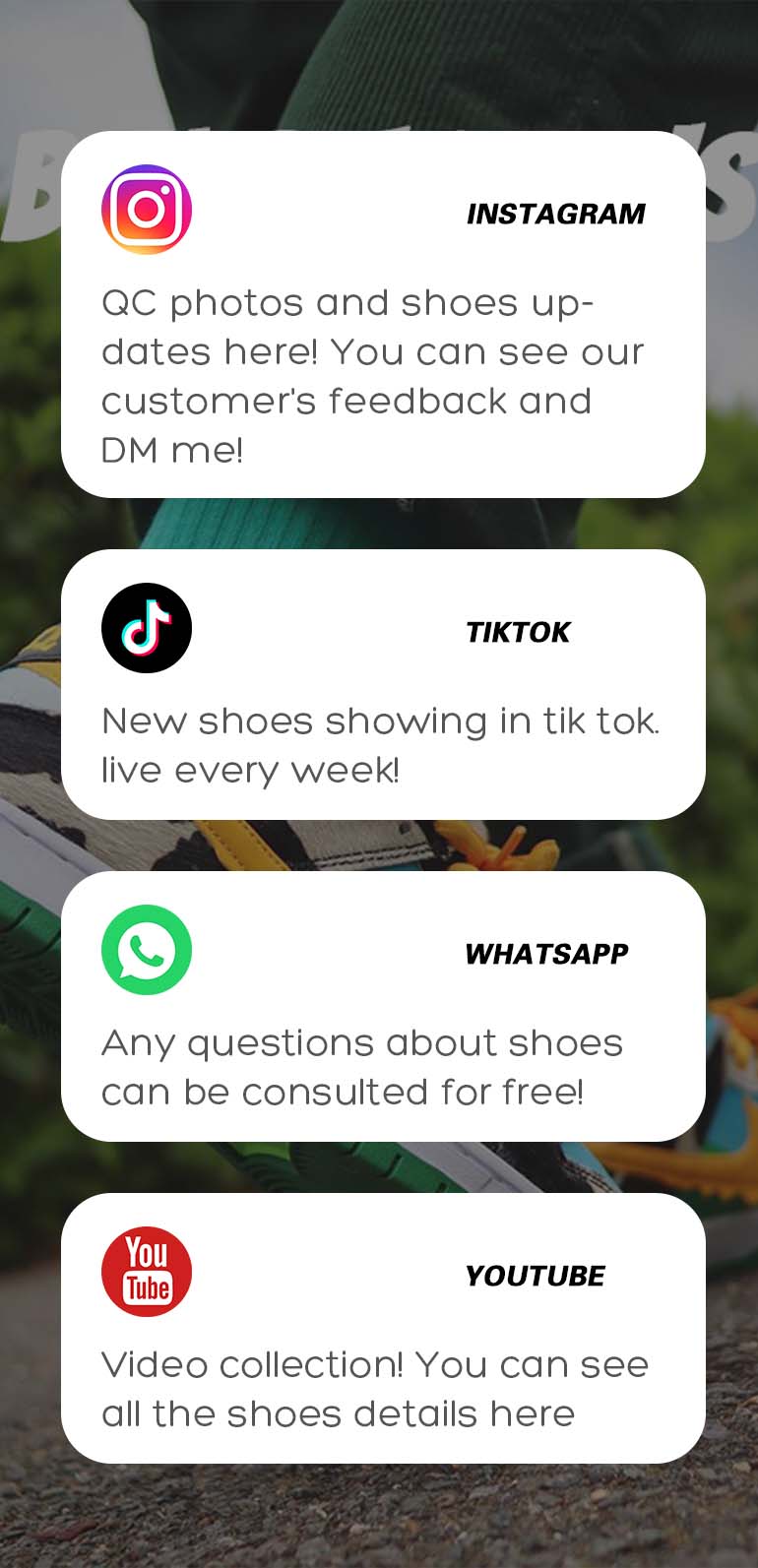WE SELL NOT ONLY SHOES, BUT ALSO CLOTHES, BAGS, BELTS AND MORE. CONTACT ME FOR MORE DETAILS. MY PREVIOUS SITE WAS SHUT DOWN FOR SELLING REPLICAS, THIS IS MY NEW SITE, FEEL FREE TO CONTACT ME VIA WHATSAPP WITH ANY QUESTIONS!