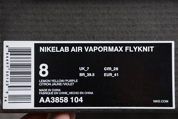 Nike Air VaporMax Flyknit 2018 Lemon Yellow/Purple mens AA3858-104