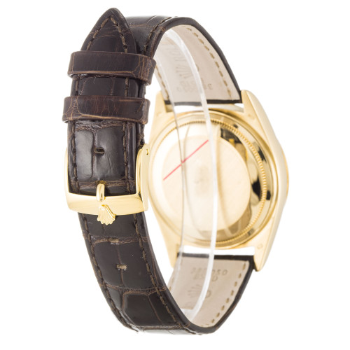 Additional information Product Range Day-Date Water Resistant Water Resistant model 18038 Bracelet Material Crocodile – Brown Brand Rolex Case Material Yellow Gold Case size 36 MM Dial type Champagne Baton Gender Unisex Model 18038 Movement Automatic Range Day-Date Water Resistant Water Resistance Bracelet Material Leather