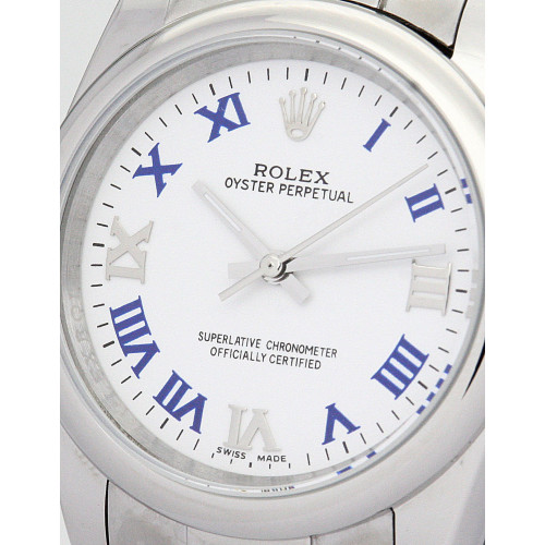 Additional information Product Range Lady Oyster Perpetual Water Resistant Water Resistant model 177200 Bracelet Material Steel (Oyster) Brand Rolex Case Material Steel Case size 31 MM Dial type Blue Roman Numeral and white dial Gender Ladies Model 177200 Movement Automatic Range Lady Oyster Perpetual Water Resistant Water Resistance Bracelet Material Steel