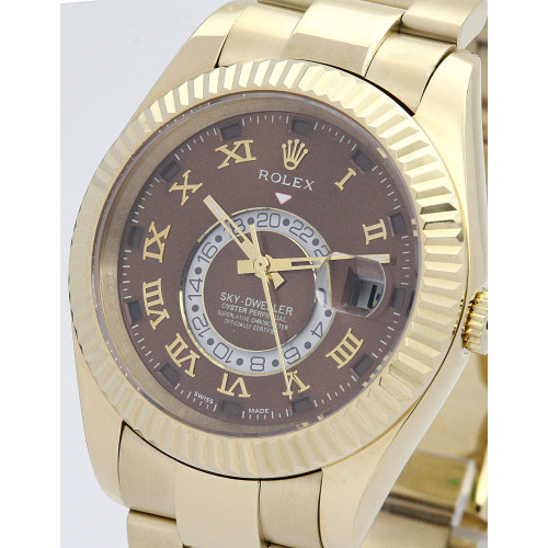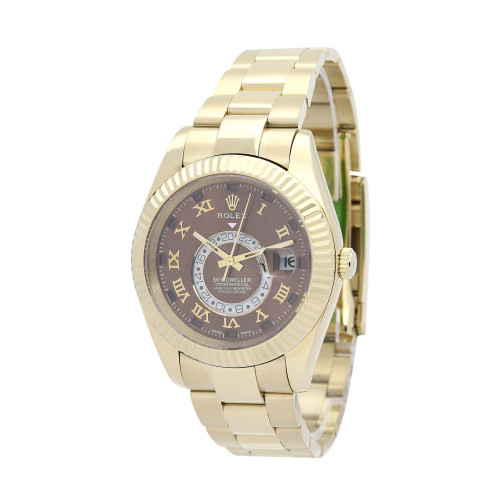 Additional information Product Range Sky-Dweller Water Resistant Water Resistant model 326938 Bracelet Material Yellow Gold (Oyster) Brand Rolex Case Material Yellow Gold Case size 42 MM Dial type Brown dial Gender Men Model 326938 Movement Automatic Range Sky-Dweller Water Resistant Water Resistance Bracelet Material Steel