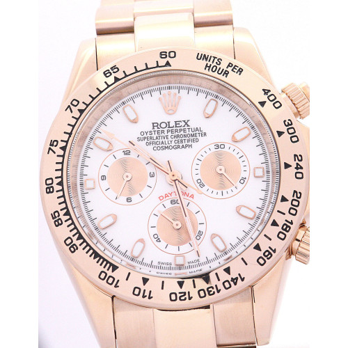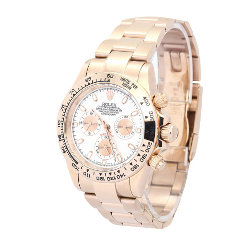 Additional information Product Range Daytona Water Resistant Water Resistant model 116505 Bracelet Material Rose Gold Brand Rolex Case Material Rose Gold Case size 40 MM Dial type Ivory Baton Gender Men Model 116505 Movement Automatic Range Daytona Water Resistant Water Resistance Bracelet Material Steel